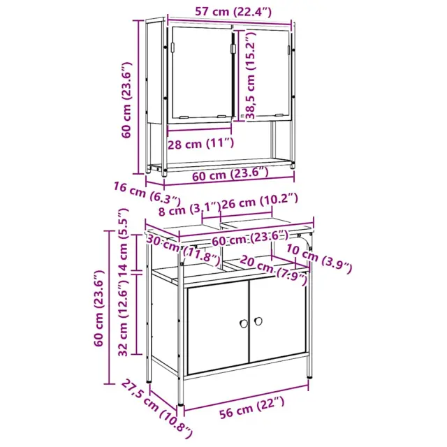 • 1 x Omara za umivalnik: 60 x 30 x 60 cm (D x Š x V)
