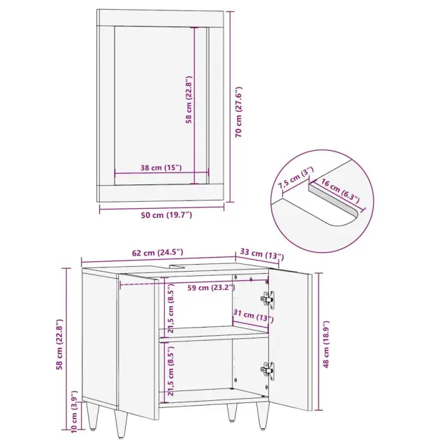 vidaXL Komplet pohištva za kopalnico 2 pcs Siva 62 x 33 x 58 cm