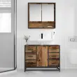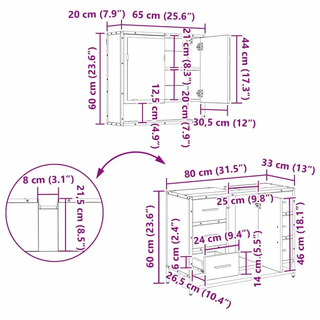 Ta rustikalni kopalniški set ponuja odlično mešanico funkcionalnosti in stila, zaradi česar je super izbira za vse, ki iščejo praktičen in estetsko privlačen dodatek v kopalnici. Njegova teksturirana površina in harmonična kombinacija inženirskega lesa ter jeklenih elementov prinašata robustno lepoto, po kateri rustikalna zasnova slovi. Ne glede na to, ali prenavljate celotno kopalnico ali samo iščete enostavno nadgradnjo, ta set nudi odlično priložnost za združevanje udobja in karizme.