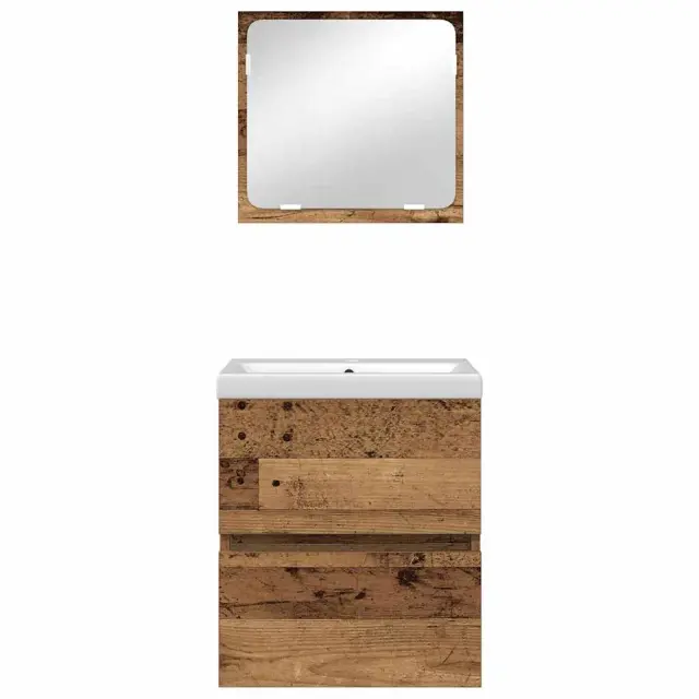 vidaXL Komplet pohištva za kopalnico 2 pcs Staro les in bela