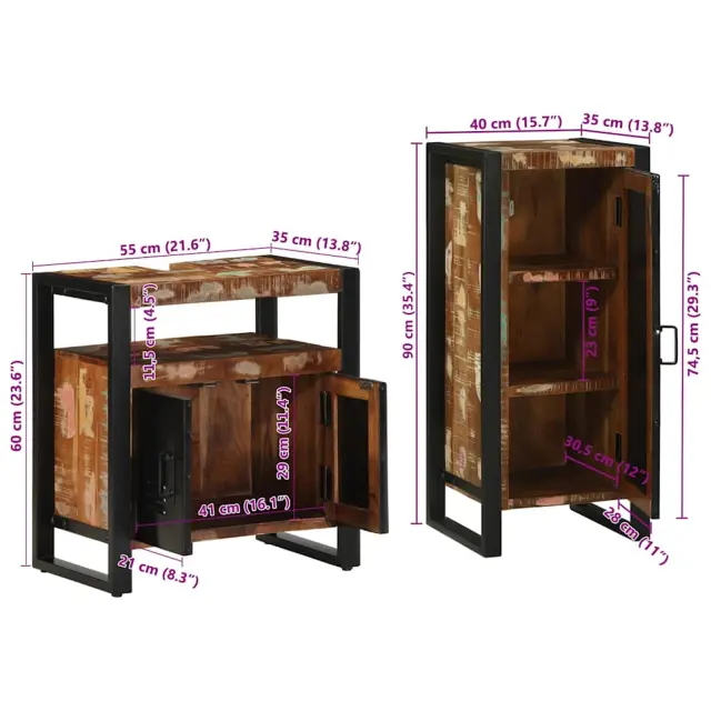 vidaXL Komplet pohištva za kopalnico 2 pcs Trdna obnovljena les