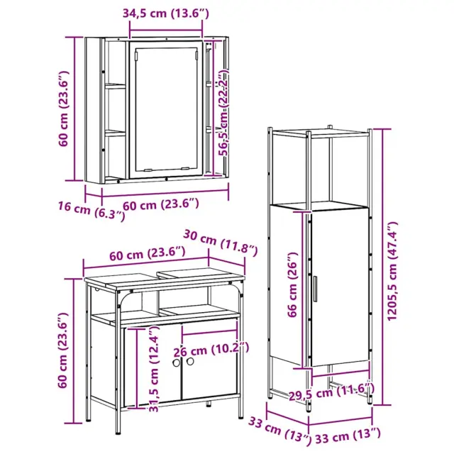 vidaXL Komplet pohištva za kopalnico 3 pcs Rjava 60 x 30 x 60 cm