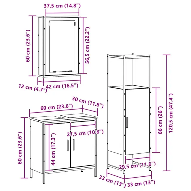 vidaXL Komplet pohištva za kopalnico 3 pcs Rjava 33 x 33 x 120,5 cm