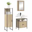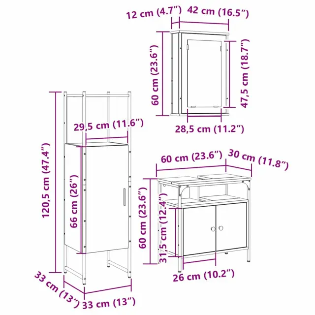 Ta moderni set kopalniškega pohištva doda elegantno noto v vsako kopalnico. Zasnova ima čiste linije in minimalističen štih, kar je idealno za vse, ki želijo imeti funkcionalen, a hkrati stiliziran prostor. Set se prilega sodobni estetiki in ponuja praktične rešitve za vsakdanjem življenju. Njegova temno rjava barva daje globino in ustvarja pomirjujočo atmosfero.