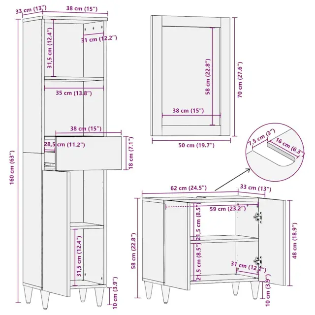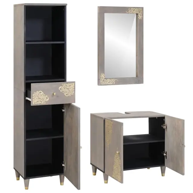 vidaXL Komplet pohištva za kopalnico 3 pcs Siva 62 x 33 x 58 cm