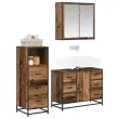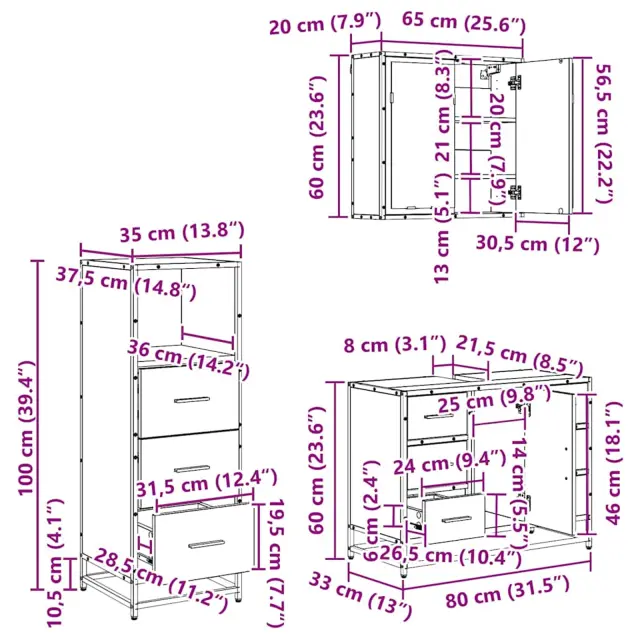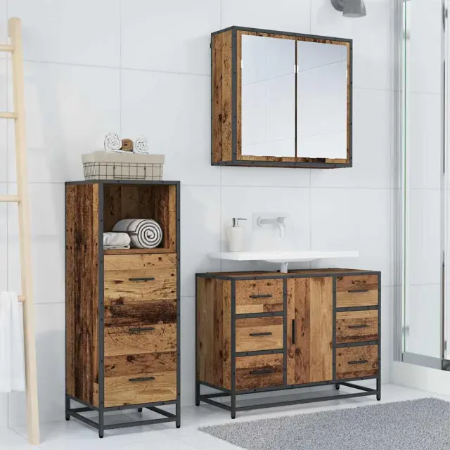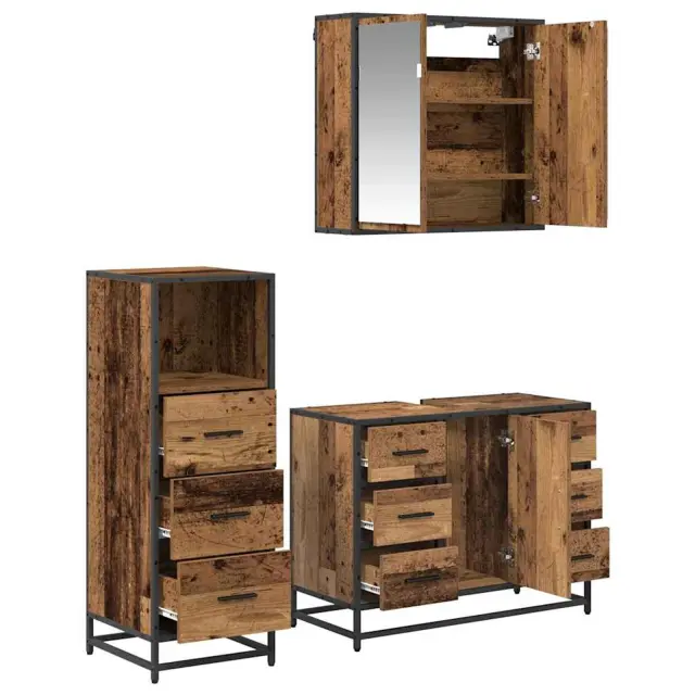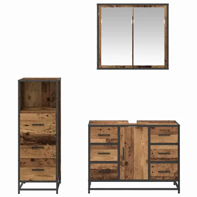 • Vključeni elementi Komplet vključuje ogledalno omarico, omarico za umivalnik in shranjevalno omarico, kar ti daje vse potrebno za pametno shranjevanje. Vsak kos je zasnovan, da maksimira prostor in omogoča enostaven dostop do vsega.
