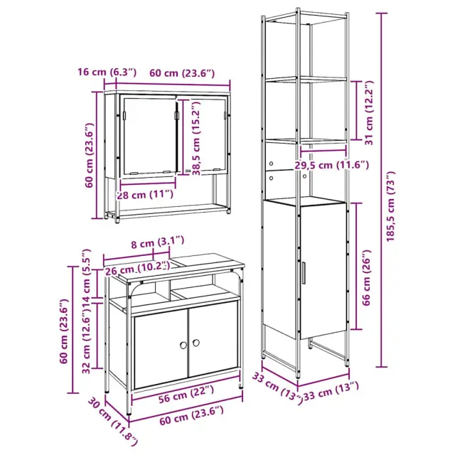 Ta kopalniški komplet preuredi vsako kopalnico v urejen in eleganten prostor, ki povezuje funkcionalnost s stilom. Primeren je za vse shranjevalne potrebe in izboljšuje celoten izgled prostora. Minimalističen dizajn prinaša občutek miru, kar vsako obisko kopalnice naredi prijetno izkušnjo.