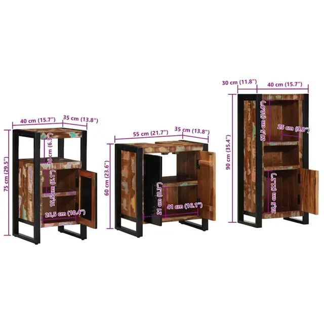 Taj moderni set pohištva za kopalnice s preprostim dizajnom ponuja eleganco in funkcionalnost, kar ga dela nepogrešljivega v vsaki sodobni kopalnici. S svojo preprosto pravokotno obliko in čistimi linijami prinaša urejenost. Uživajte v večjem prostoru za shranjevanje s tremi različnimi omaricami. Spremenite svoj prostor v mirno oazo, idealno za posameznike ali družine, ki iščejo praktične rešitve.