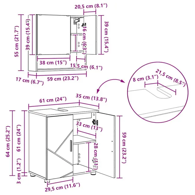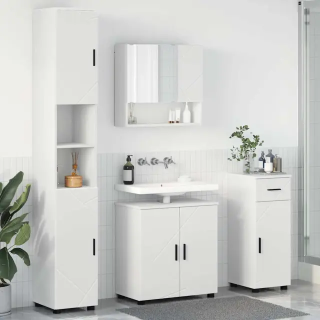 Ta moderni komplet kopalniškega pohištva je pameten način za reševanje težav s shranjevanjem v kopalnici, hkrati pa ohranja stilski videz. Njegova čista, pravokotna oblika in stenska zasnova se odlično prilegata sodobni dekoraciji, kar izkorišča prostor, ne da bi žrtvoval stil.