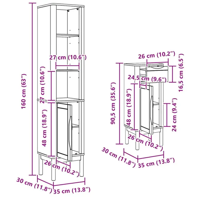 • 1 x Kopalniški omarica: 35 x 30 x 160 cm (D x Š x V)