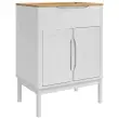 • Trdna borova konstrukcija Ta kopalniški komplet je narejen iz robustnega borovega lesa, ki združuje moč in estetsko privlačnost. Vsaka komponenta je zasnovana z natančnostjo in trajanjem v mislih. Naravni leseni vzorec prinese dodatno toplino v vašo kopalnico.