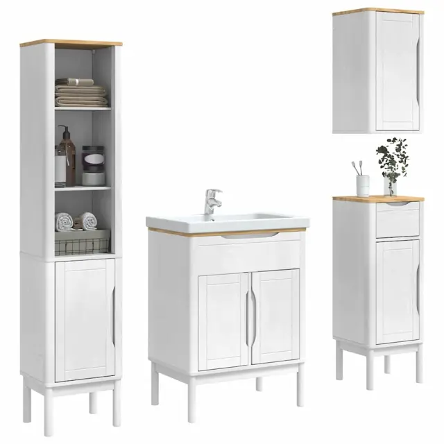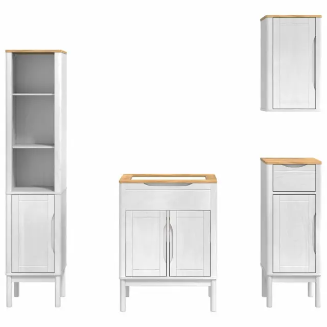 vidaXL Komplet pohištva za kopalnico 4 pcs Bela Masivno borovo les