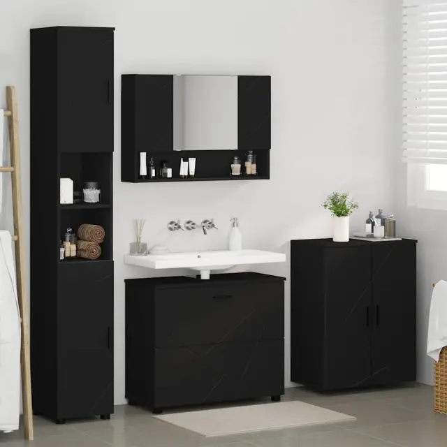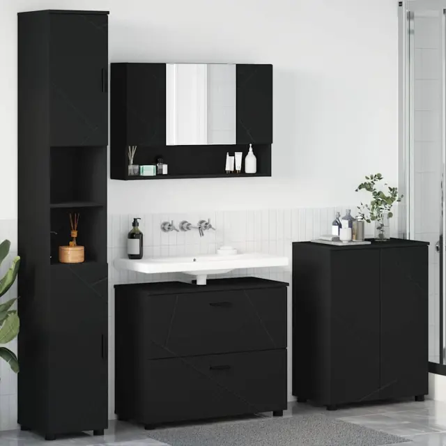 vidaXL Komplet pohištva za kopalnico 4 pcs Črna 30 x 35 x 192 cm