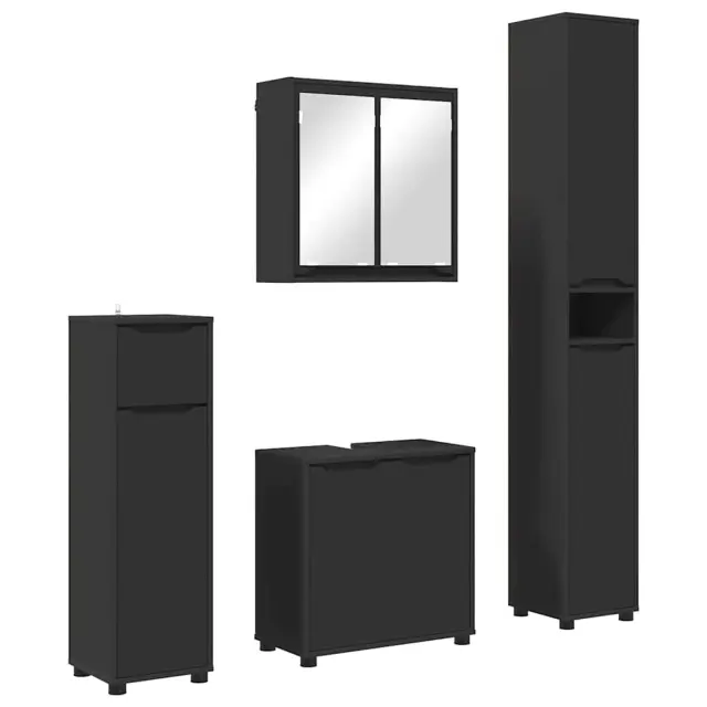 vidaXL Komplet pohištva za kopalnico 4 pcs Črna Konstruiran les