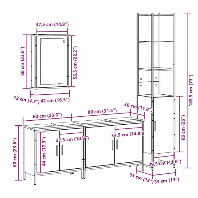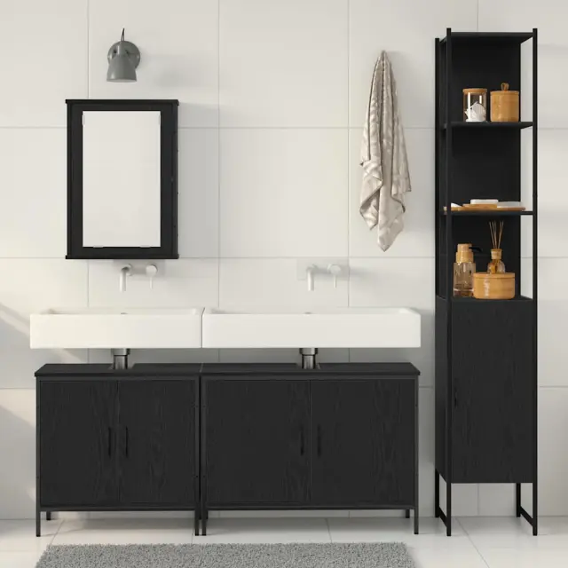 Ta stilni komplet kopalniškega pohištva združuje praktičnost s preprostostjo za sodoben dom. Z omaricami na steni in vgrajenim ogledalom ponuja minimalistično eleganco ter dovolj prostora za vaše kopalniške potrebščine.