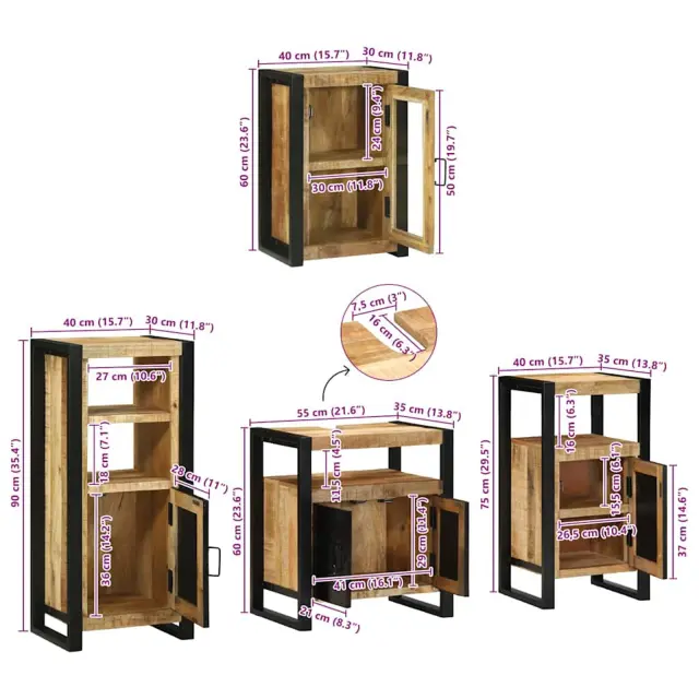 vidaXL Komplet pohištva za kopalnico 4 pcs Rjava Masiven les manga
