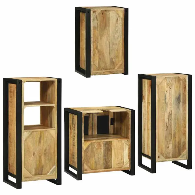 vidaXL Komplet pohištva za kopalnico 4 pcs Rjava Masiven les manga