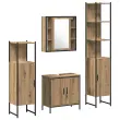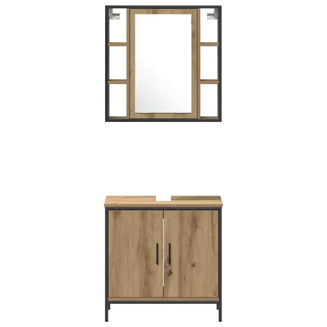 Ta moderna kopalniška garnitura združuje stil in funkcionalnost - idealna za popestritev vašega doma. S čistimi linijami se prilega različnim notranjim slogom in ponuja rešitve za shranjevanje brez žrtvovanja prostora. Zamislite si organizirano kopalnico, kjer ima vse svoje mesto, ob tem pa ohranja sofisticiran videz z uporabo inženirskega lesa in gladkih površin.