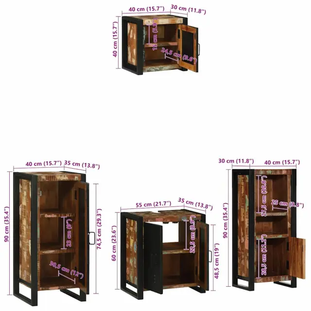Ta sodoben set kopalniškega pohištva ponuja preprostost in funkcionalnost, z čistimi linijami in minimalnim okrasjem. Popoln je za manjše kopalnice, saj se zlahka vklopi v sodobne prostore in omogoča veliko prostora za shranjevanje s minimalističnim izgledom. Njegov privlačen in praktičen pristop dopolnjuje različne stilske usmeritve, pri čemer optimizira postavitev prostora.