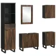 • Inženirski les: Ta komplet iz inženirskega lesa je zasnovan za dolgotrajnost in moderen izgled. Material se enostavno čisti z vlažno krpo, kar je super za zaposlitev. Slikovit zaključek prinaša eleganco v kopalnico, ne da bi jo preobremenil.