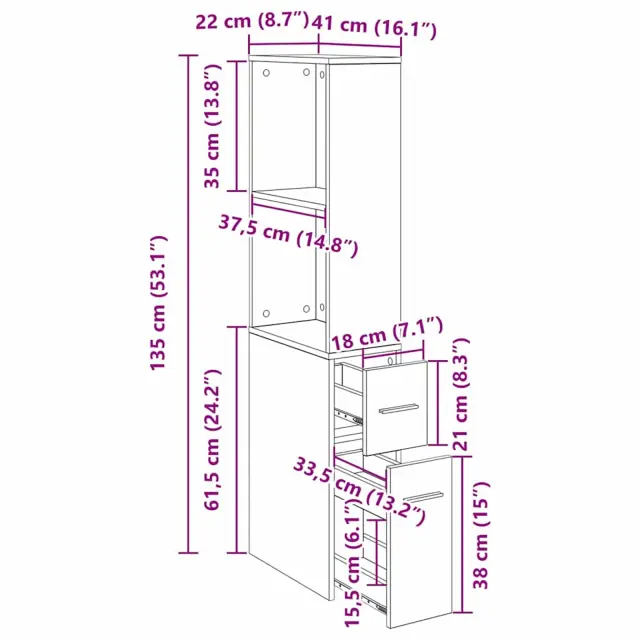 Ta omarica iz inženirskega lesa je eleganten shranjevalni element, ki izboljšuje estetsko in funkcionalno stran modernih kopalnic. S smooth linijami in minimalističnimi detajli se odlično prilega sodobnim dekoracijam. Njen izpopolnjen videz in praktičnost omogočata organizacijo toaletnih potrebščin, brisač in drugih osnovnih stvari ter zagotavljata urejeno in čisto kopalnico. Oblika, ki varčuje s prostorom, odlično deluje v manjših prostorih ter prispeva k enostavnemu in organiziranemu vzdušju.