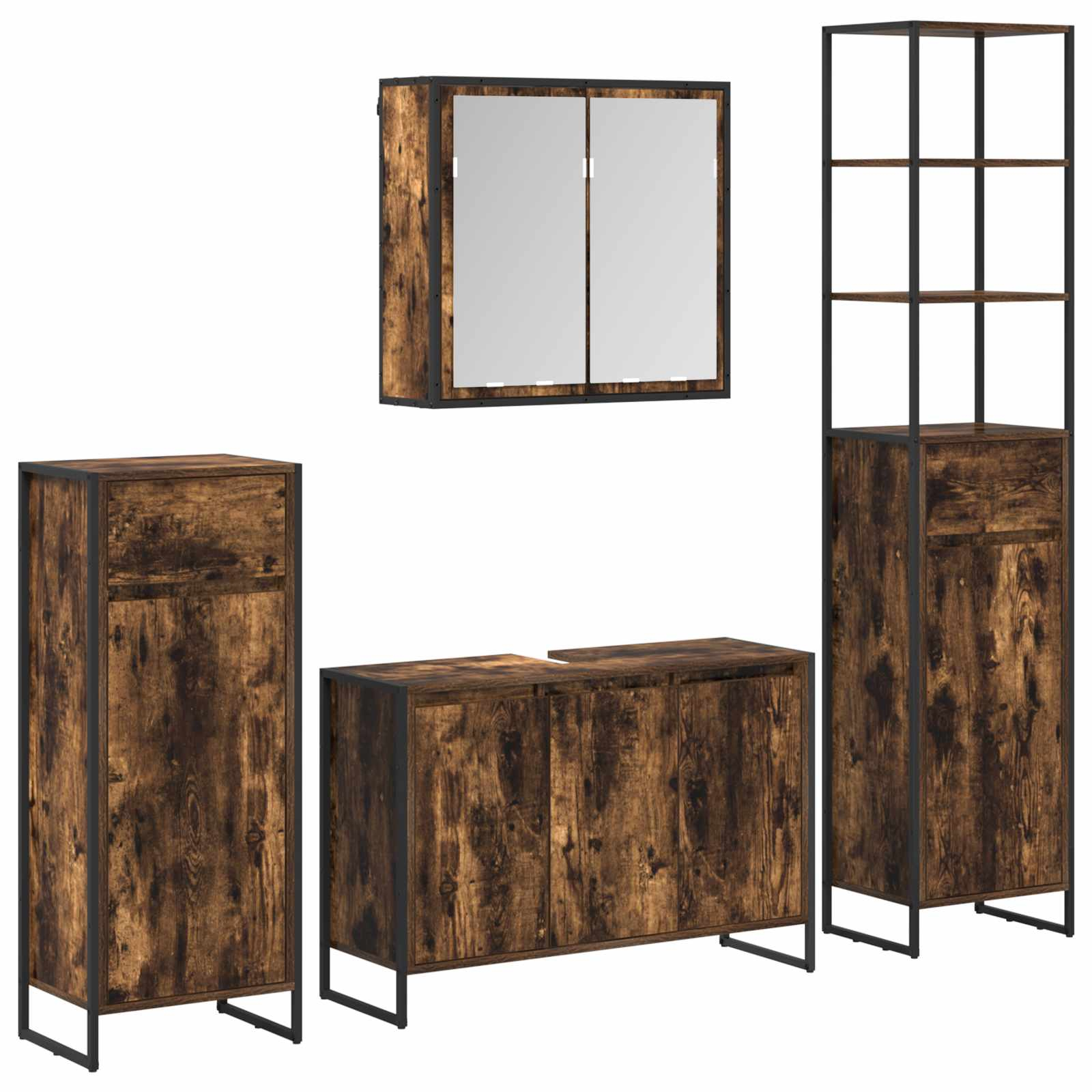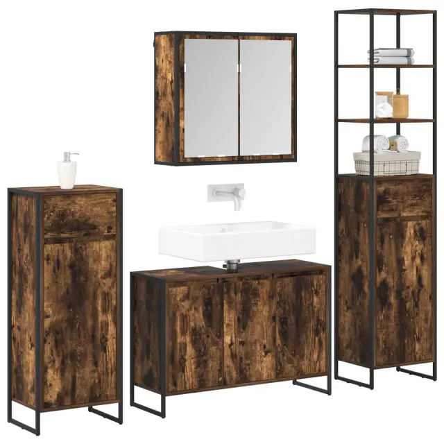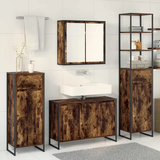Ta kopalniški set združuje sodoben stil in funkcionalnost. Super je za urbana bivalna prostora, saj ponuja učinkovito shranjevanje s smooth oblikami in eleganco. Inženirski les in jeklo mu dodata trdnost in naredijo praktičen ter estetski dodatek v vsaki kopalnici.