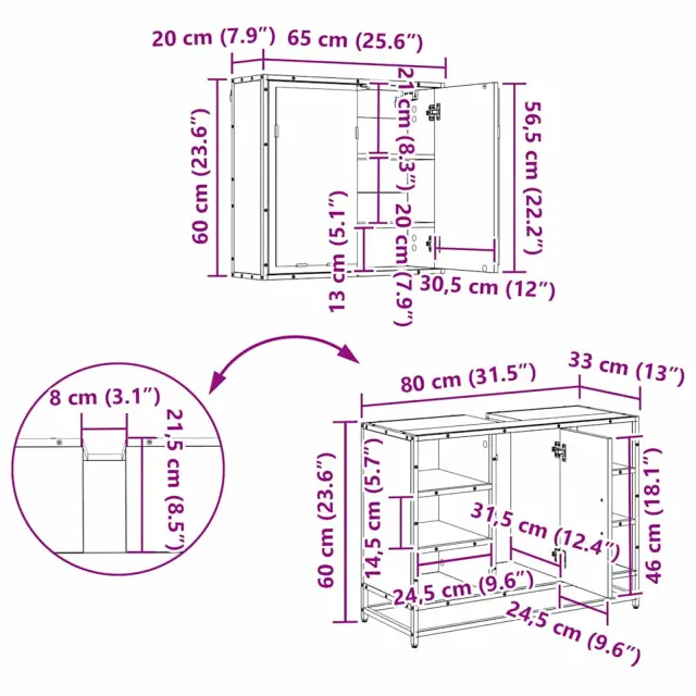 vidaXL Komplet pohištva za kopalnico s polico 2 pcs Črna Orehovina