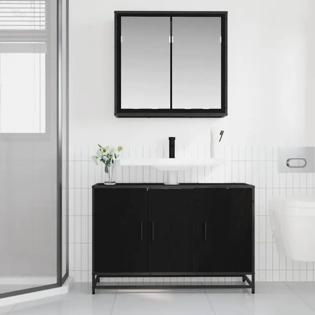 vidaXL Komplet pohištva za kopalnico s polico 2 pcs Črna Orehovina