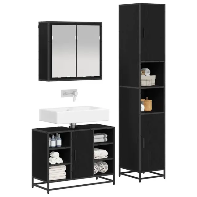vidaXL Komplet pohištva za kopalnico s polico 3 pcs Črna Orehovina