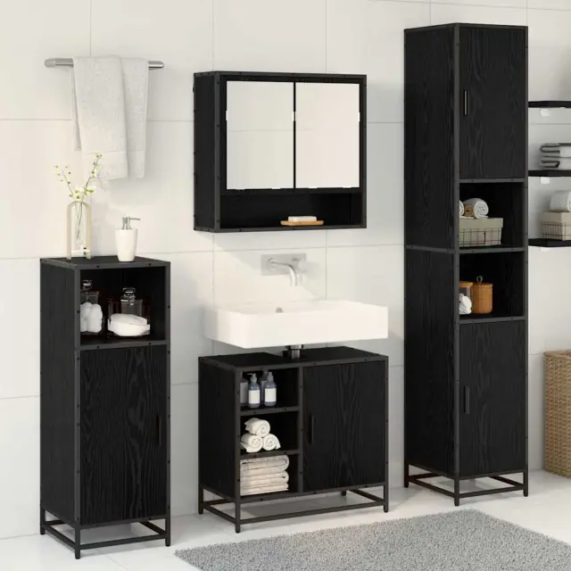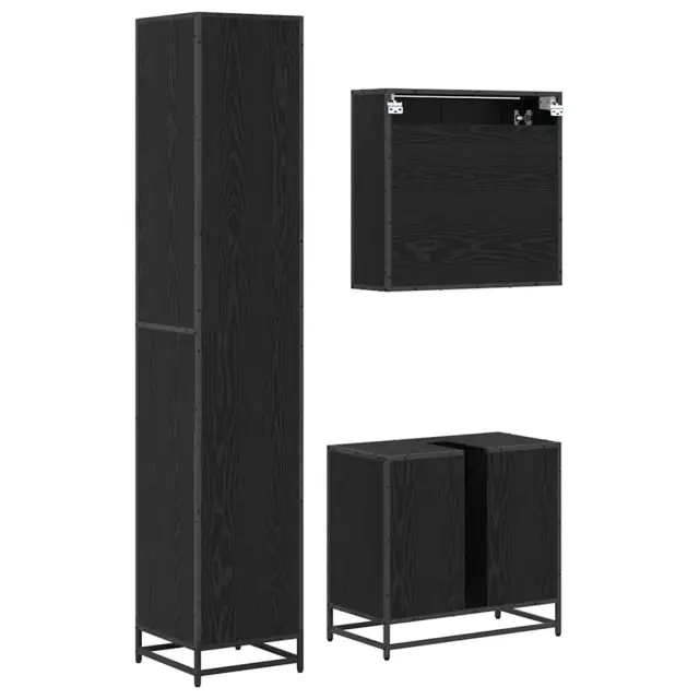 vidaXL Komplet pohištva za kopalnico s polico 3 pcs Črna Orehovina