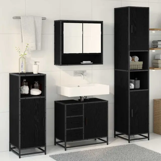 vidaXL Komplet pohištva za kopalnico s polico 3 pcs Črna Orehovina