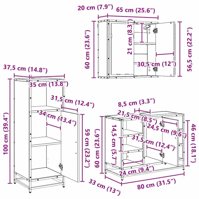 vidaXL Komplet pohištva za kopalnico s polico 3 pcs Črna Orehovina