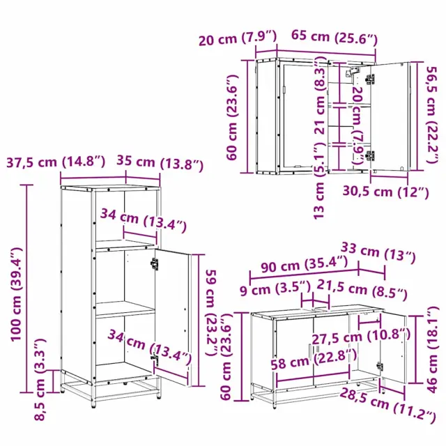 vidaXL Komplet pohištva za kopalnico s polico 3 pcs Umetni hrast
