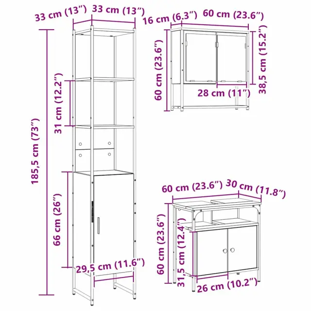 Ta kopalniški komplet preuredi vsako kopalnico v urejen in eleganten prostor, ki povezuje funkcionalnost s stilom. Primeren je za vse shranjevalne potrebe in izboljšuje celoten izgled prostora. Minimalističen dizajn prinaša občutek miru, kar vsako obisko kopalnice naredi prijetno izkušnjo.