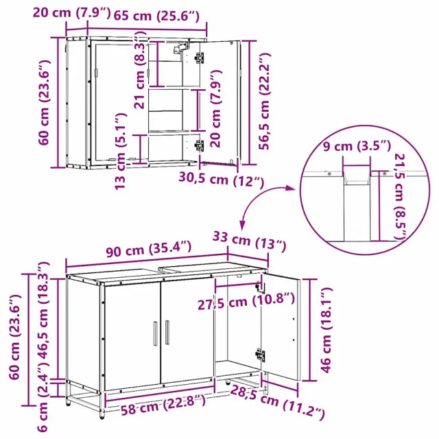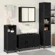 vidaXL Komplet pohištva za kopalnico s polico 4 pcs Črna Orehovina