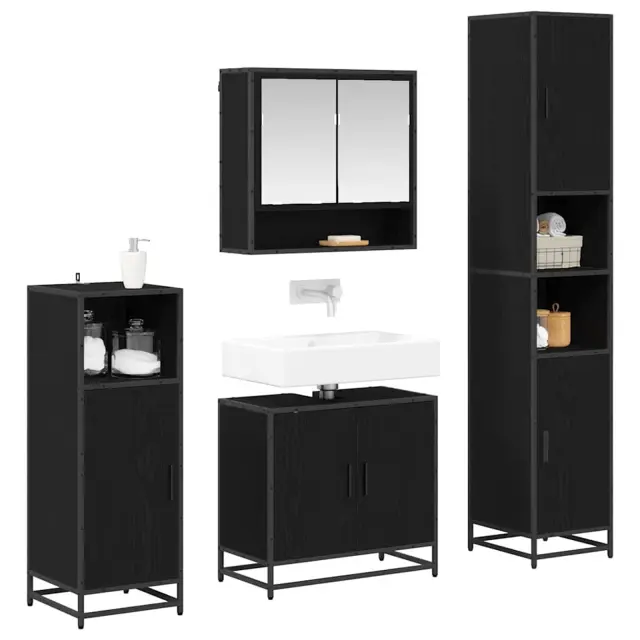 vidaXL Komplet pohištva za kopalnico s polico 4 pcs Črna Orehovina