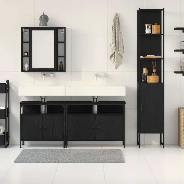 vidaXL Komplet pohištva za kopalnico s polico 4 pcs Črna Orehovina