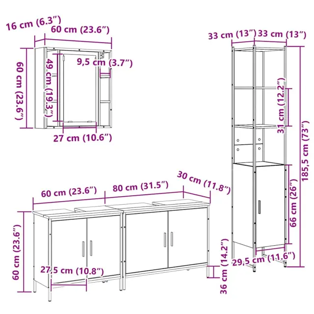 Moderna kopalniška pohištvena garnitura spremeni vsako kopalnico v elegantno in organizirano okolje z minimalističnim dizajnom in funkcionalnimi lastnostmi. Namenjena tistim, ki si želijo lepega in brezšivnega prostora, ta garnitura odraža sodoben stil, ki združuje poenostavljen videz in uporabnost. Njena pravokotna oblika se lepo prilega v različnih kopalnicah, izboljšuje vzdušje s svojim šik izgledom. Idealna za tiste, ki cenijo stil in organizacijo, ta pohištvena garnitura ponuja učinkovito shranjevanje in eleganten dekor, zaradi česar je super naložba za sodobne domove.