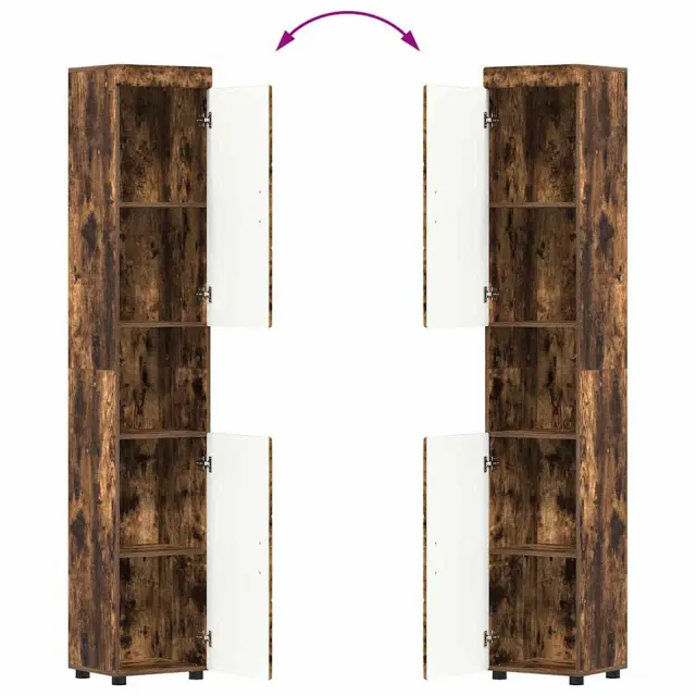 Ta sodoben set kopalniških omaric prinaša eleganten in čist videz v vsak prostor. Zasnovan je za funkcionalnost in še bolj za slog z inženirskim lesom za trdnost. Idealno se prilega različnim okoljem, saj nudi dovolj prostora za shranjevanje ključnih stvari. Gladka tekstura in mat zaključek dodata pridih elegance ter se lepo vključita v vsako kopalnico.