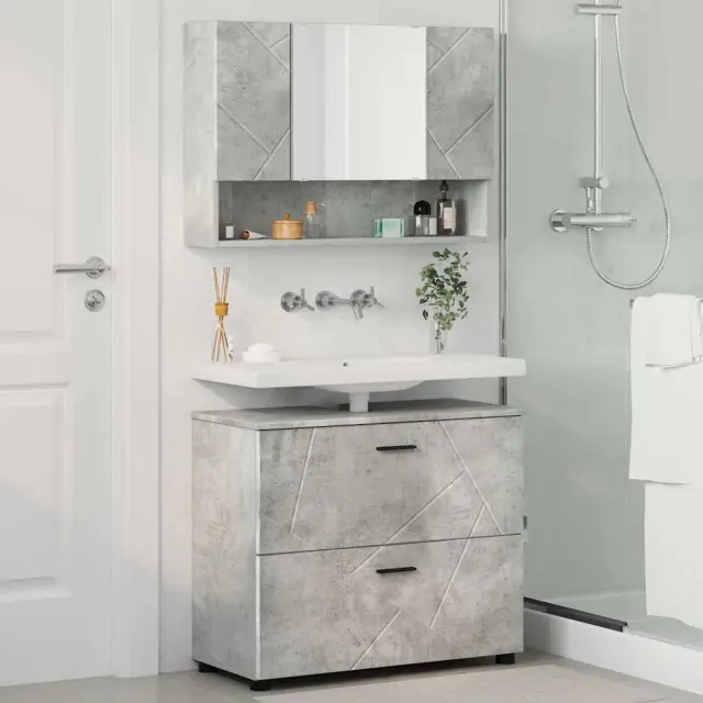 vidaXL Komplet pohištva za kopalnico s predalom 2 pcs Betonsko siva
