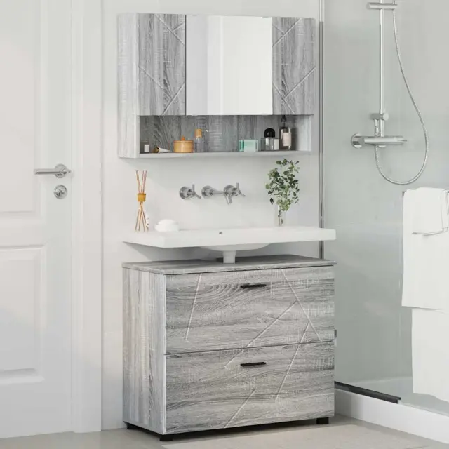 vidaXL Komplet pohištva za kopalnico s predalom 2 pcs Siva Sonoma