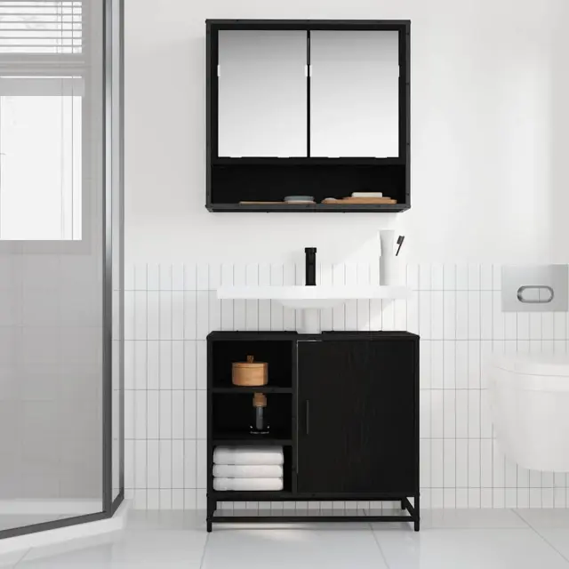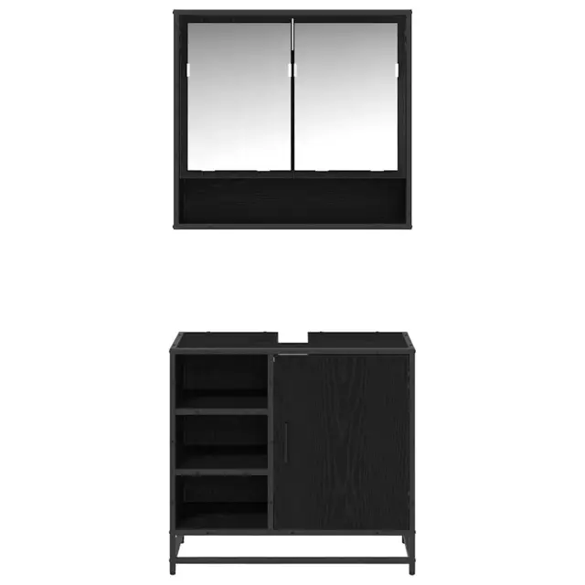 vidaXL Komplet pohištva za kopalnico s predalom 2 pcs Črna Orehovina