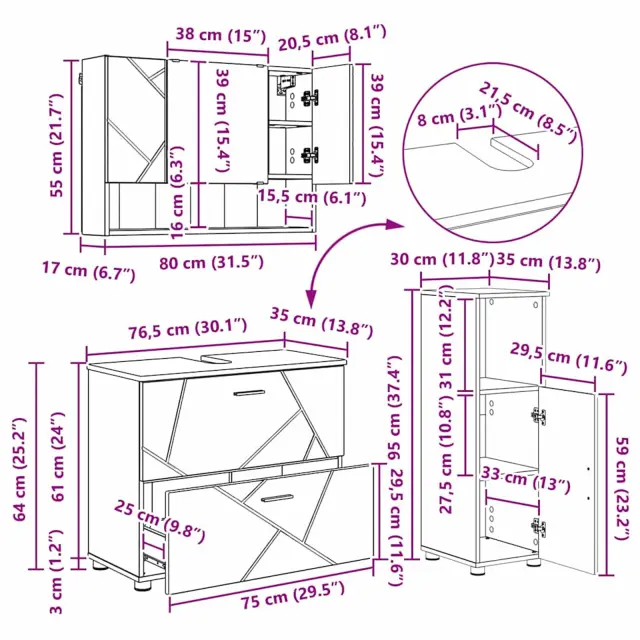 vidaXL Komplet pohištva za kopalnico s predalom 3 pcs Rjavi hrast