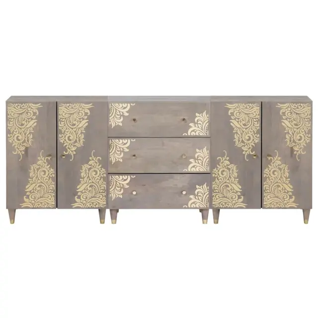 vidaXL Komplet pohištva za kopalnico s predalom 3 pcs Siva in zlata