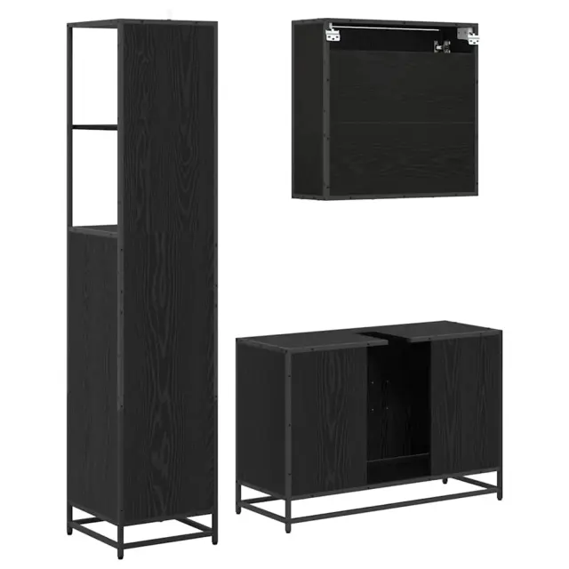 vidaXL Komplet pohištva za kopalnico s predalom 3 pcs Črna Orehovina