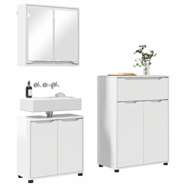 vidaXL Komplet pohištva za kopalnico s predalom 3 pcs Visok sijaj bela
