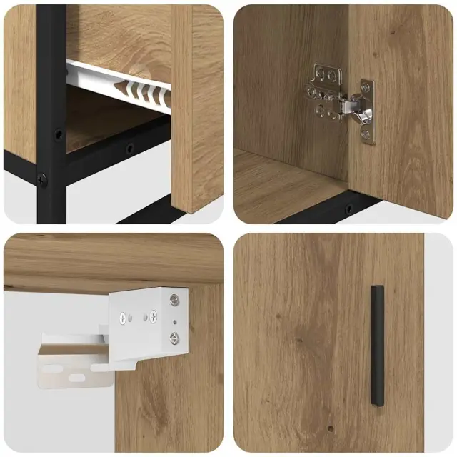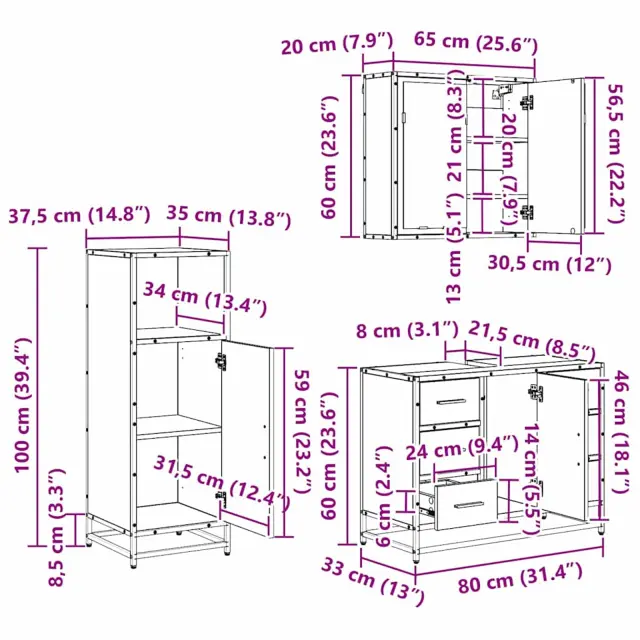Ta praktični komplet kopalniškega pohištva doseže super ravnotežje med modernim slogom in praktično uporabo. Zasnovan je za sodobne kopalnice, vključuje elegantne linije in minimalne okraske, ki se super ujemajo z vsakim dekorjem. Komplet vsebuje omaro z ogledalom, omaro za umivalnik in dodaten prostor za shranjevanje, vse narejeno za izboljšanje videza in uporabnosti vašega prostora. Njegova trdna izdelava in vrhunska obdelava ponujata elegantno izkušnjo, kar ga dela eno najboljših izbir za majhne in velike kopalnice.