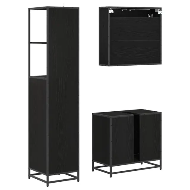 vidaXL Komplet pohištva za kopalnico s predalom 3 pcs Črna Orehovina
