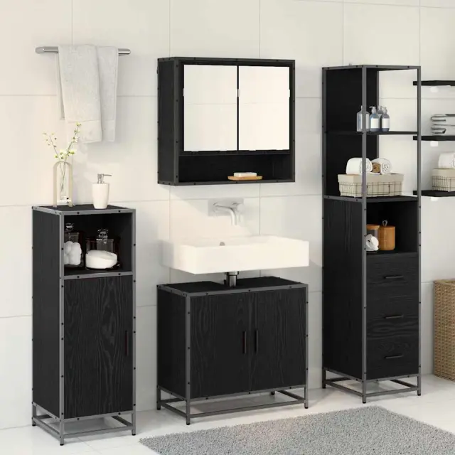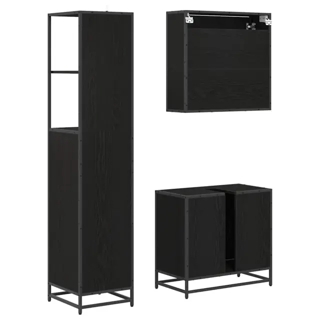 vidaXL Komplet pohištva za kopalnico s predalom 3 pcs Črna Orehovina