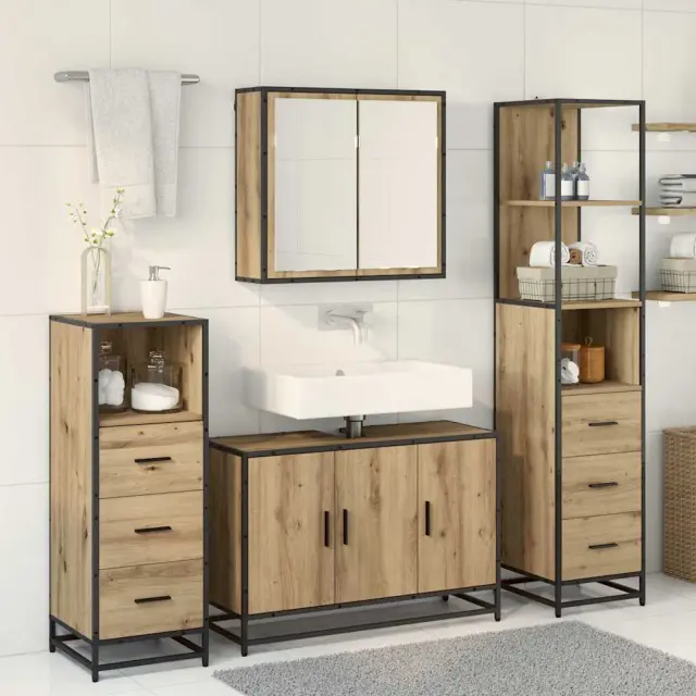 vidaXL Komplet pohištva za kopalnico s predalom 3 pcs Umetni hrast